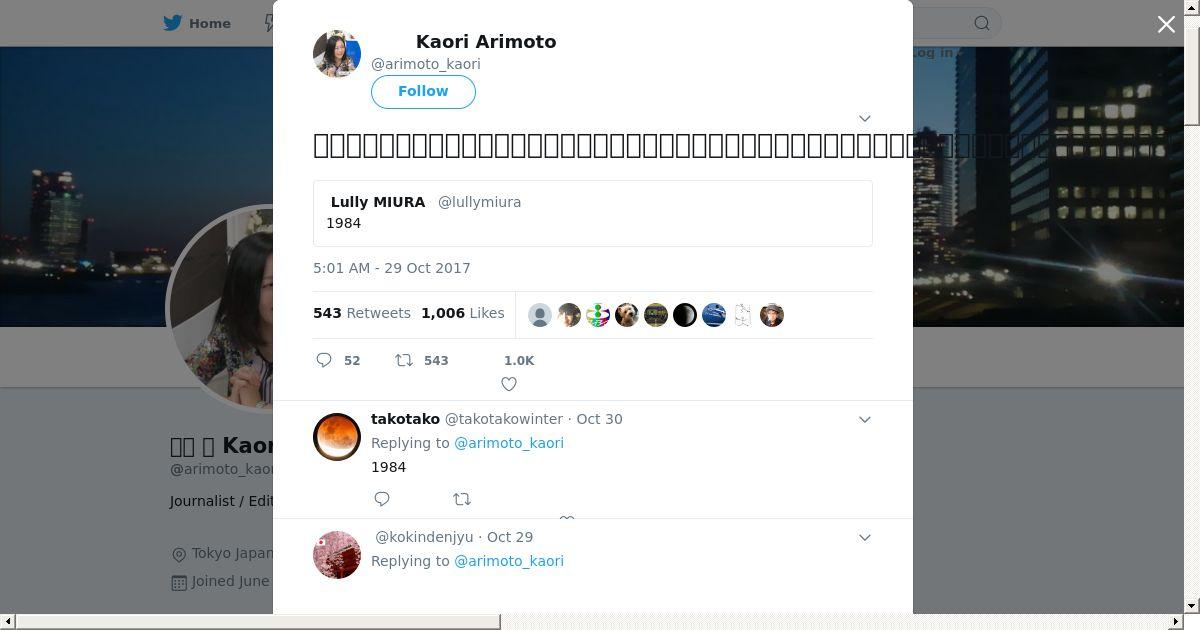 取得元URL: https://twitter.com:443/arimoto_kaori/status/924607010812788737