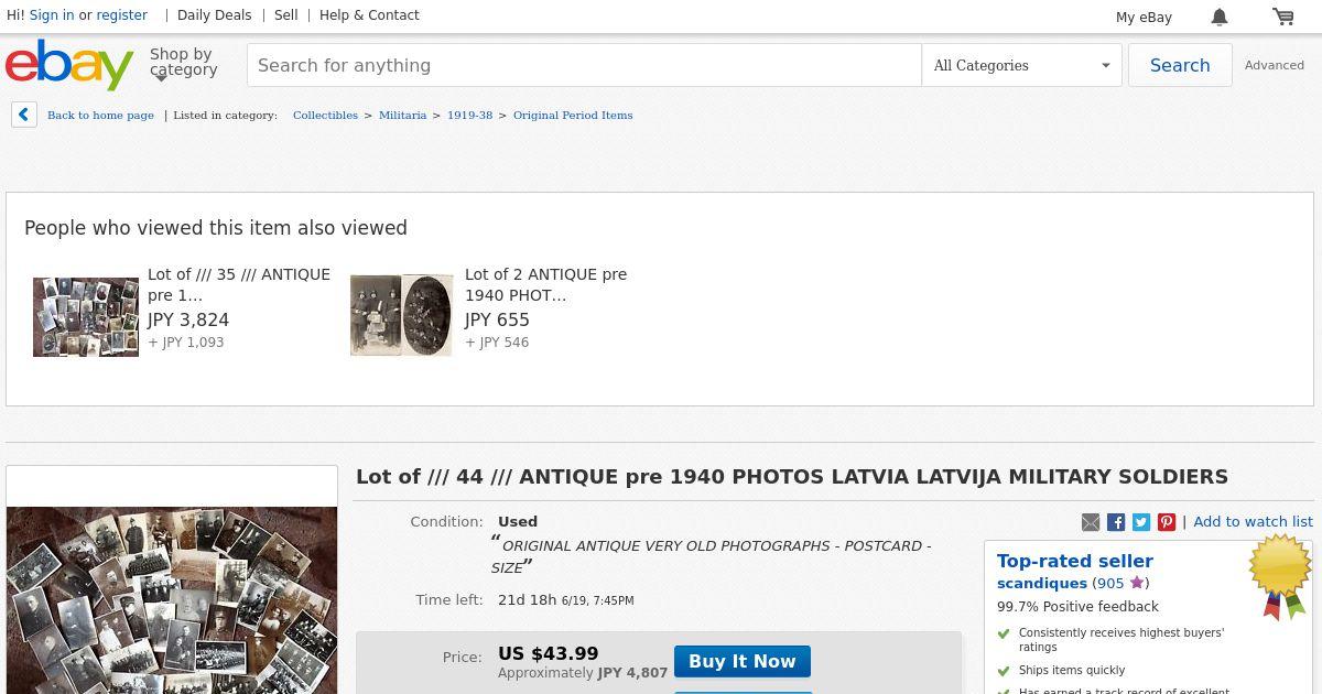 https://www.ebay.com:443/itm/Lot-of-44-ANTIQUE-pre-1940-PHOTOS-LATVIA-LATVIJA-MILITARY-SOLDIERS/113003604466?_trkparms=aid%3D444000%26algo%3DSOI.DEFAULT%26ao%3D1%26asc%3D50543%26meid%3D87788d2b749a41f8a94dc3e199ccc6b7%26pid%3D100752%26rk%3D4%26rkt%3D6%26sd%3D113003604410%26itm%3D113003604466&_trksid=p2047675.c100752.m1982