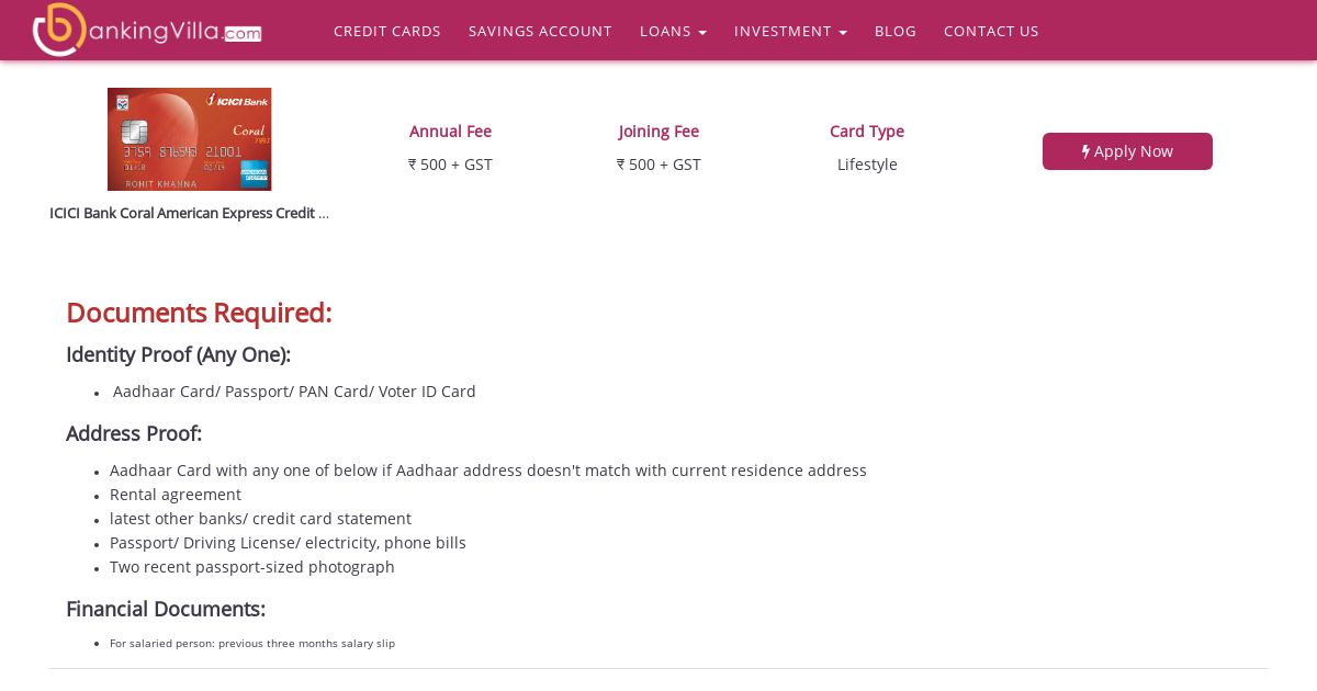 https://www.bankingvilla.com:443/Credit-Card/icici-bank-coral-american-express-credit-card.php