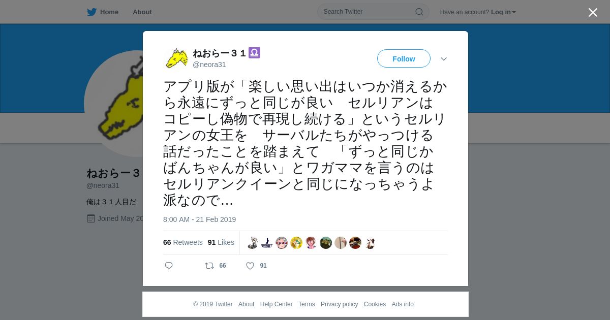 取得元URL: https://twitter.com:443/neora31/status/1098613442125021184