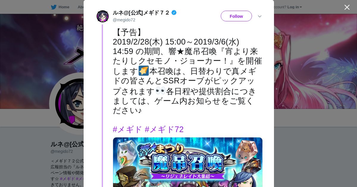 取得元URL: https://twitter.com:443/megido72/status/1099911872474566659