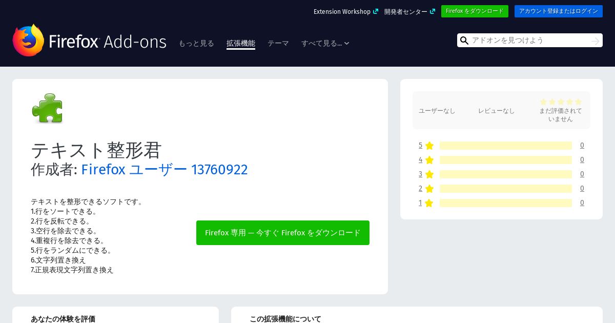 https://addons.mozilla.org:443/ja/firefox/addon/%E3%83%86%E3%82%AD%E3%82%B9%E3%83%88%E6%95%B4%E5%BD%A2%E5%90%9B/