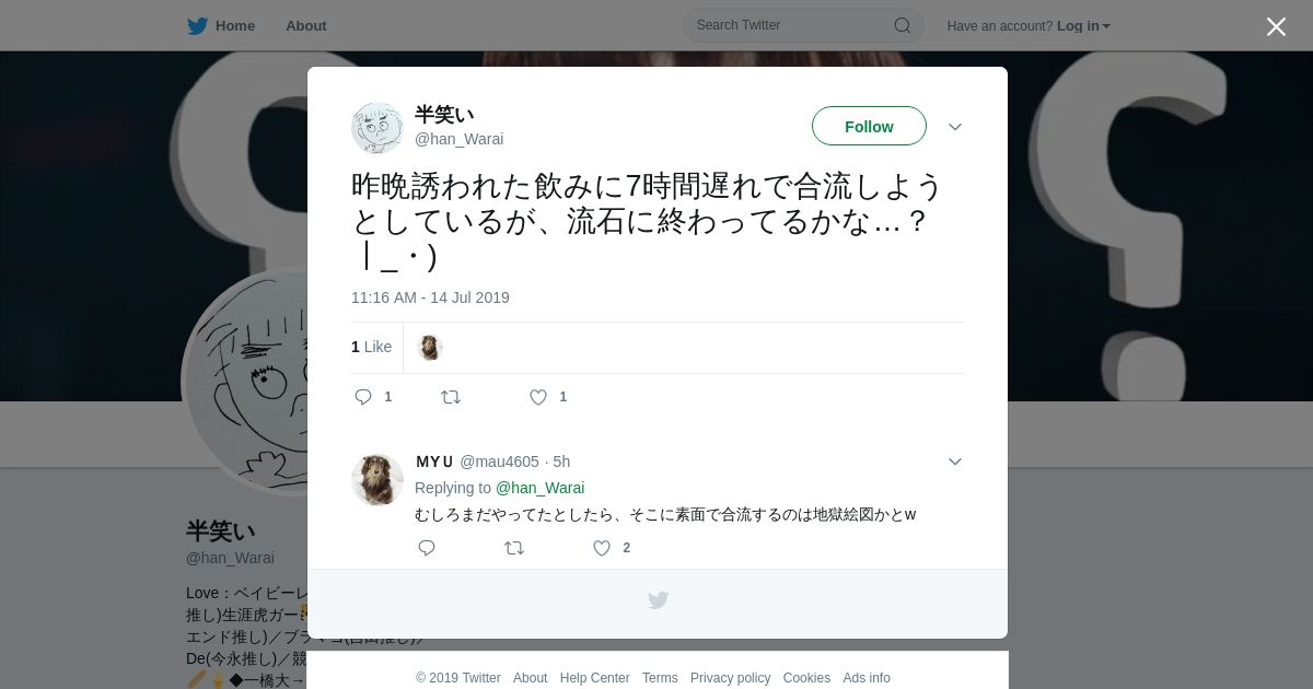 https://twitter.com:443/han_Warai/status/1150469107550056449