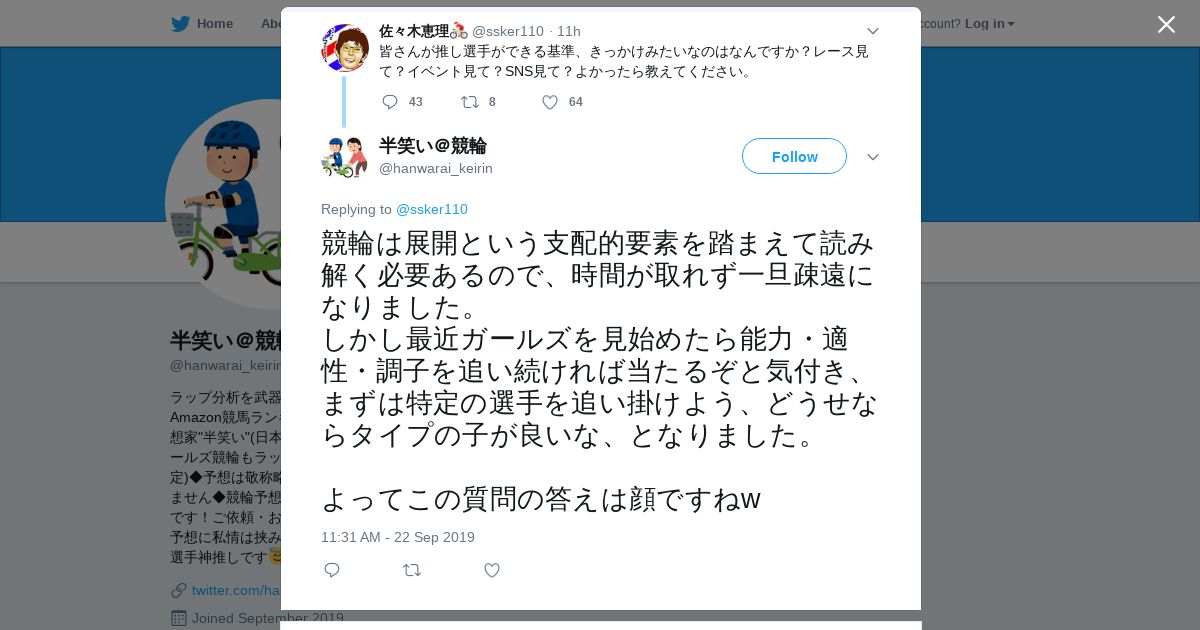 https://twitter.com:443/hanwarai_keirin/status/1175840133288869889