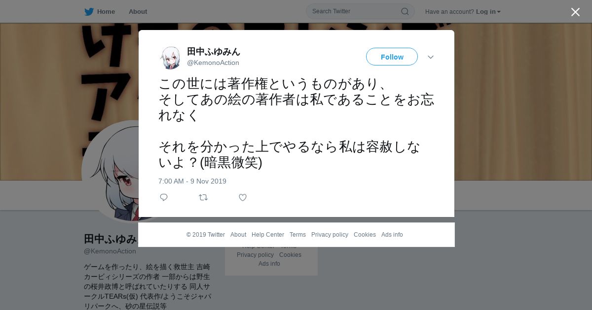 https://twitter.com:443/KemonoAction/status/1193181542945656833