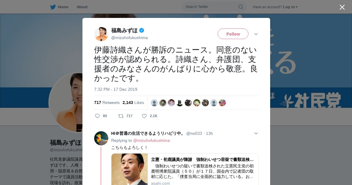 取得元URL: https://twitter.com:443/mizuhofukushima/status/1207141568903172096
