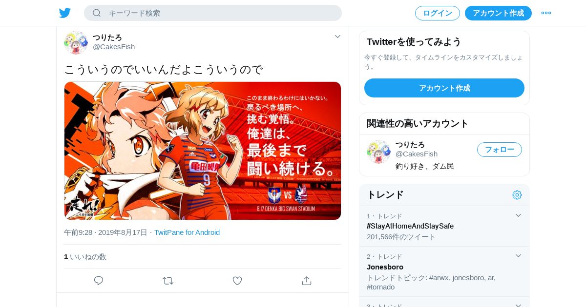 取得元URL: https://twitter.com:443/CakesFish/status/1162657439272951809