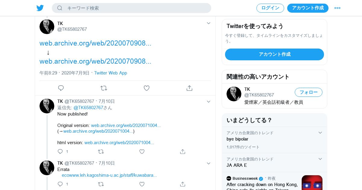 取得元URL: https://twitter.com:443/TK65802767/status/1281143407079903232