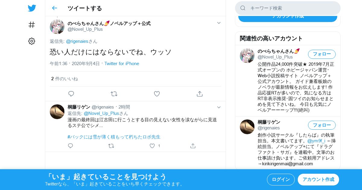 https://twitter.com:443/Novel_Up_Plus/status/1301695636920647680