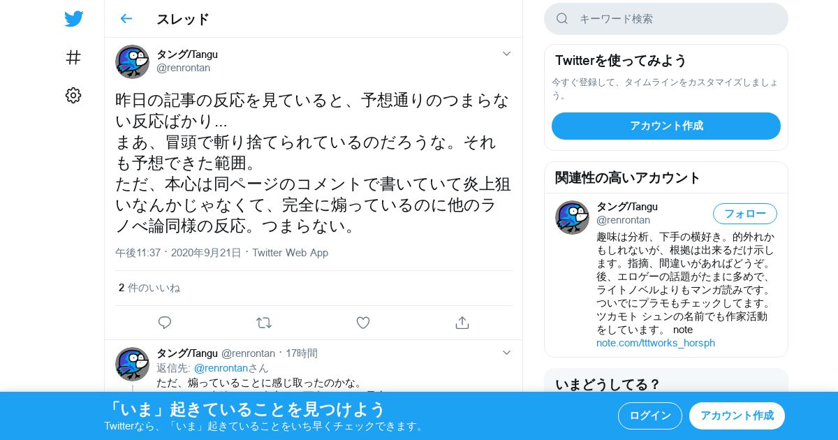 取得元URL: https://twitter.com:443/renrontan/status/1308188724698652672