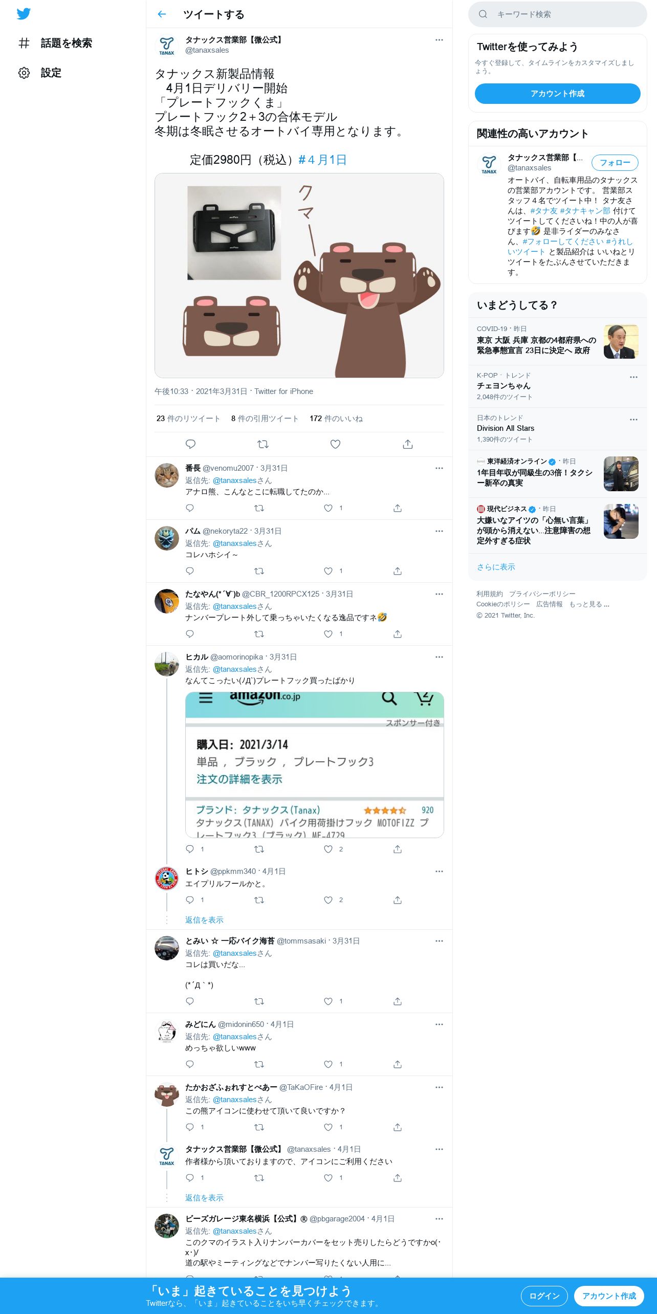 取得元URL: https://twitter.com:443/tanaxsales/status/1377388577865129984