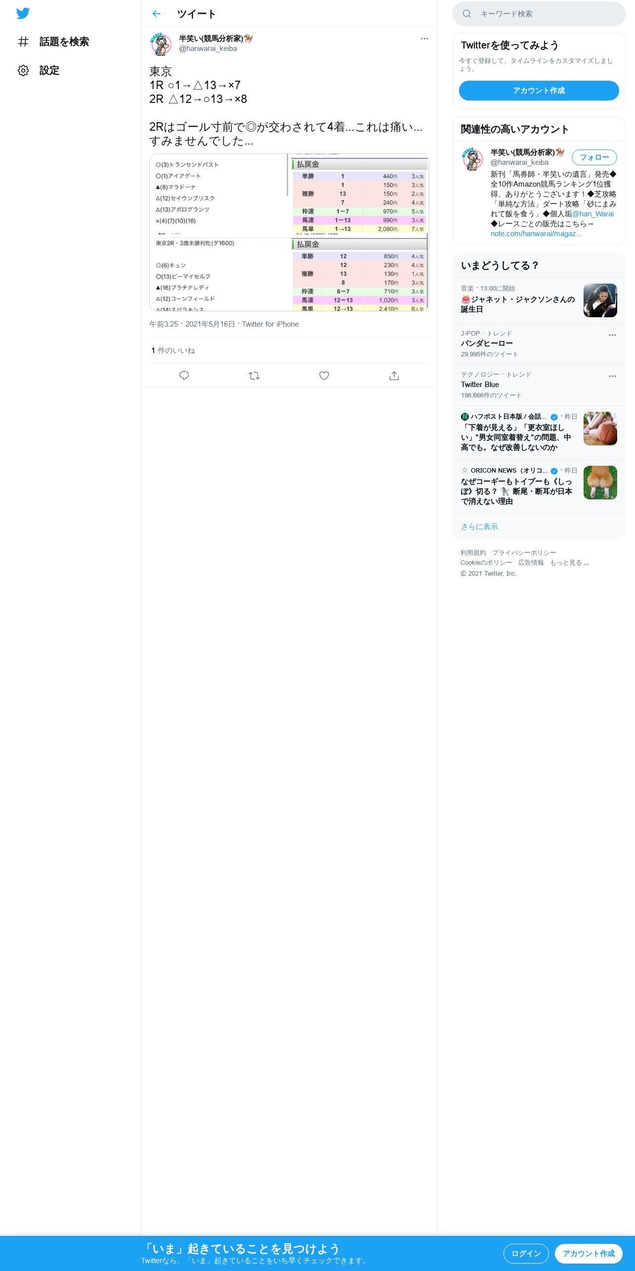 https://twitter.com:443/hanwarai_keiba/status/1393769666296774658