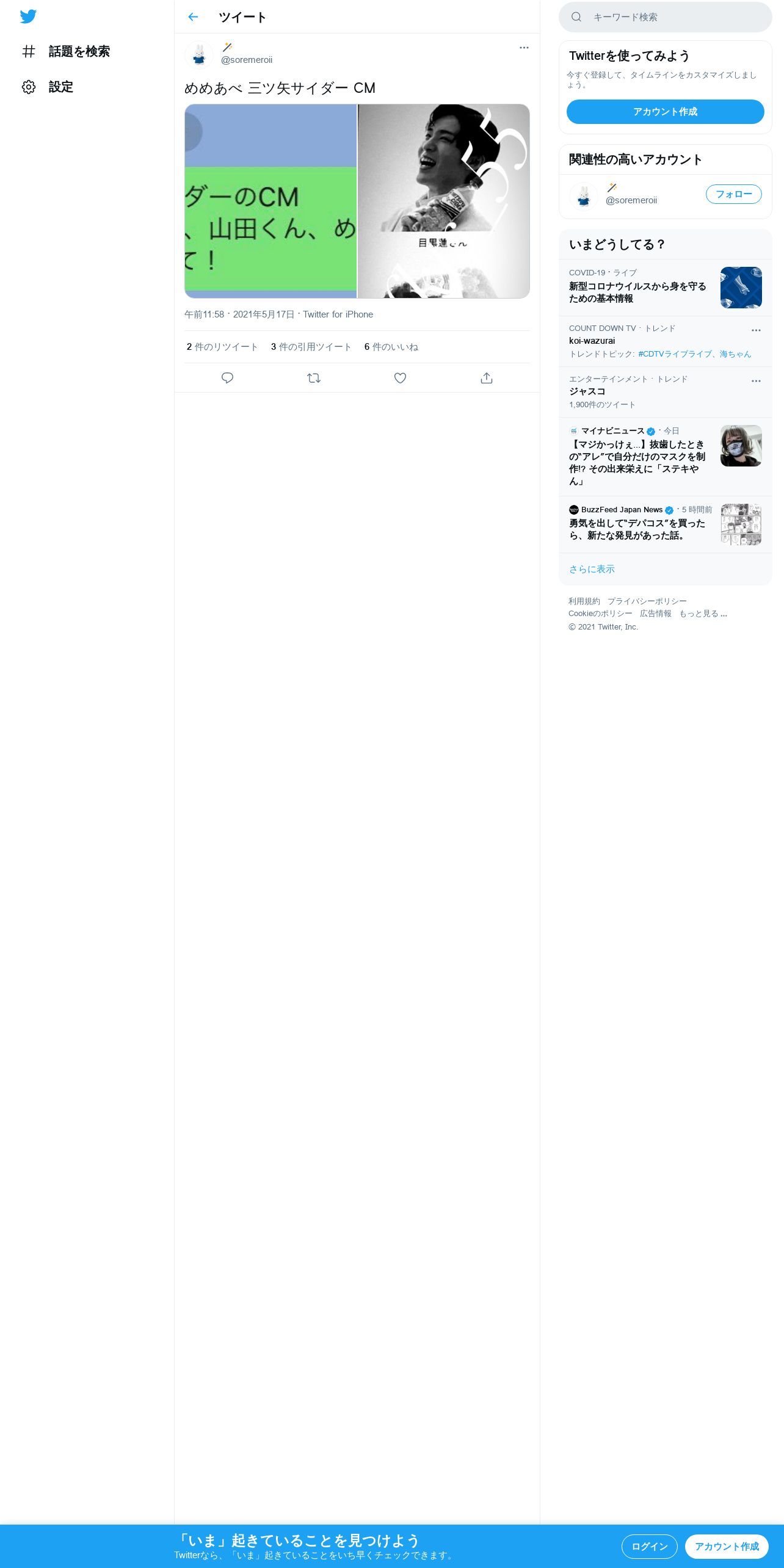 取得元URL: https://twitter.com:443/soremeroii/status/1394261150116679689