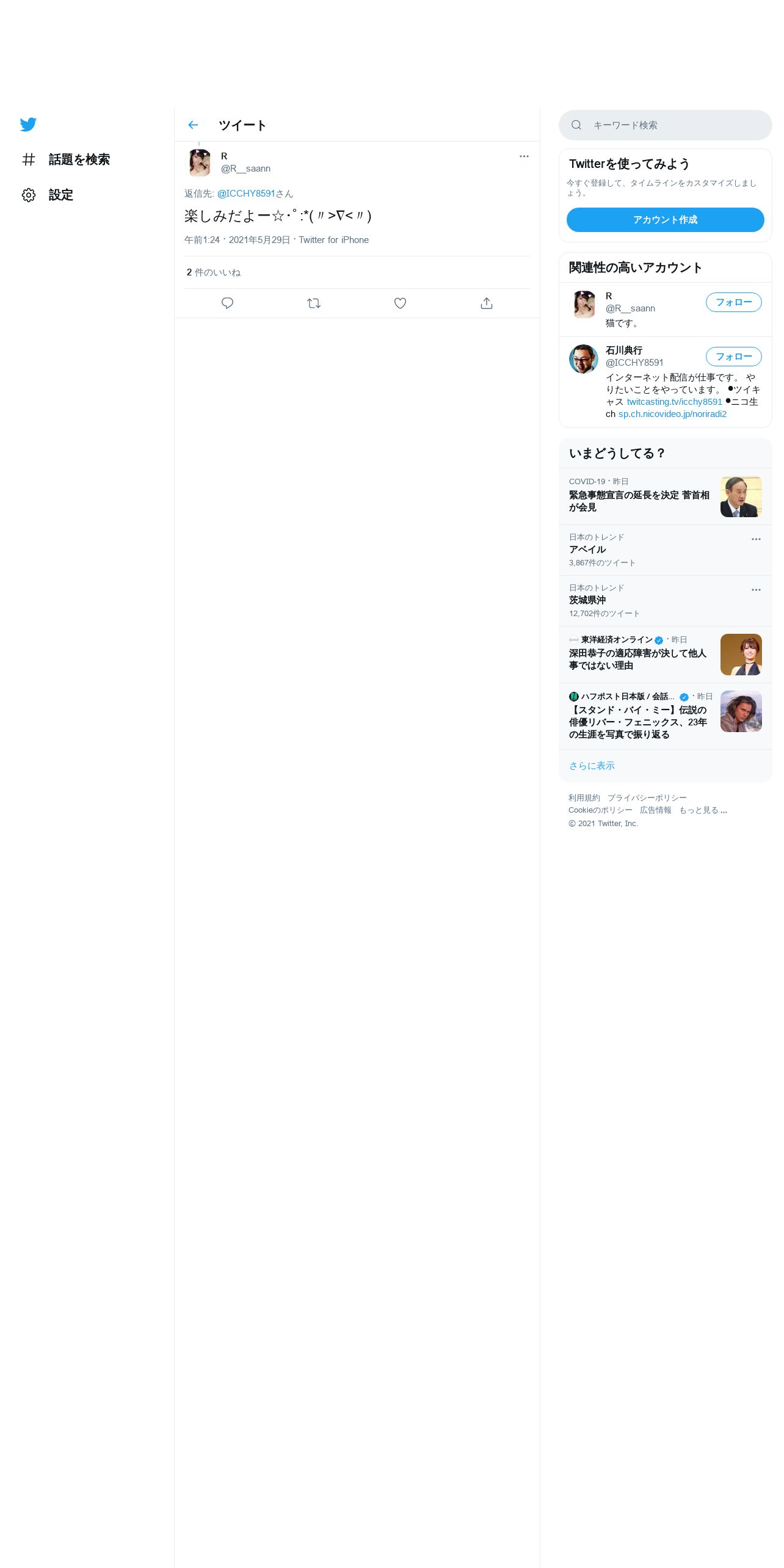 取得元URL: https://twitter.com:443/R__saann/status/1398450145511960582
