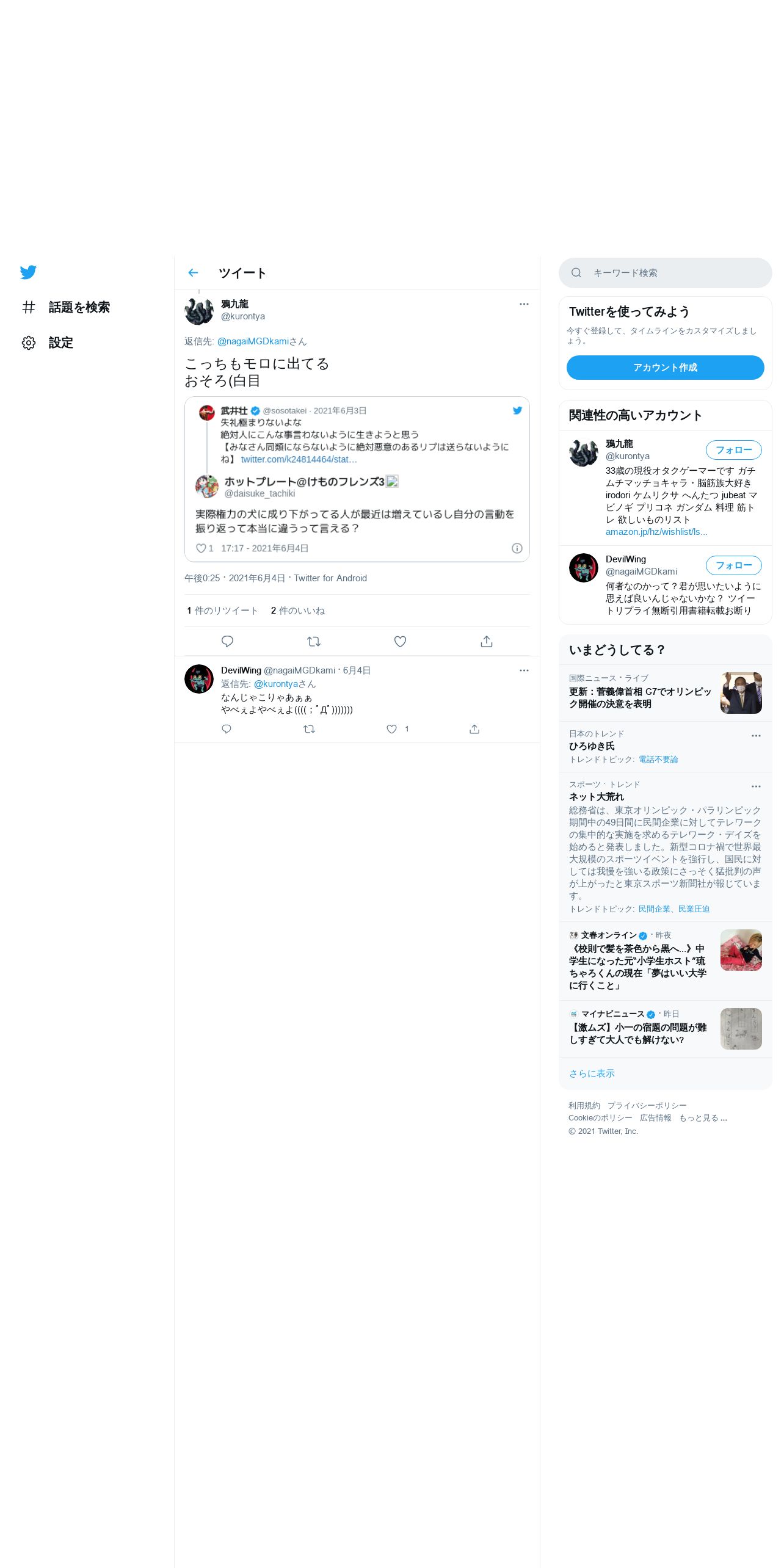 取得元URL: https://twitter.com:443/kurontya/status/1400790890252148737