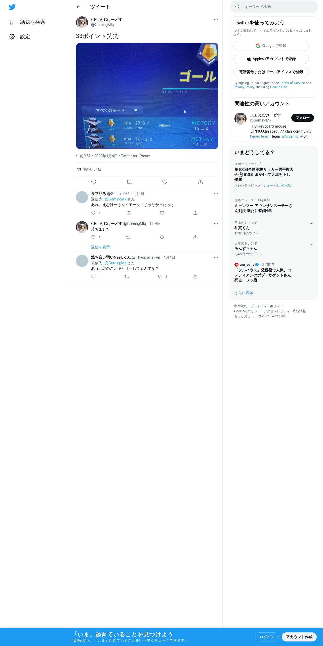 取得元URL: https://twitter.com:443/GamingMkj/status/1478303356762603520