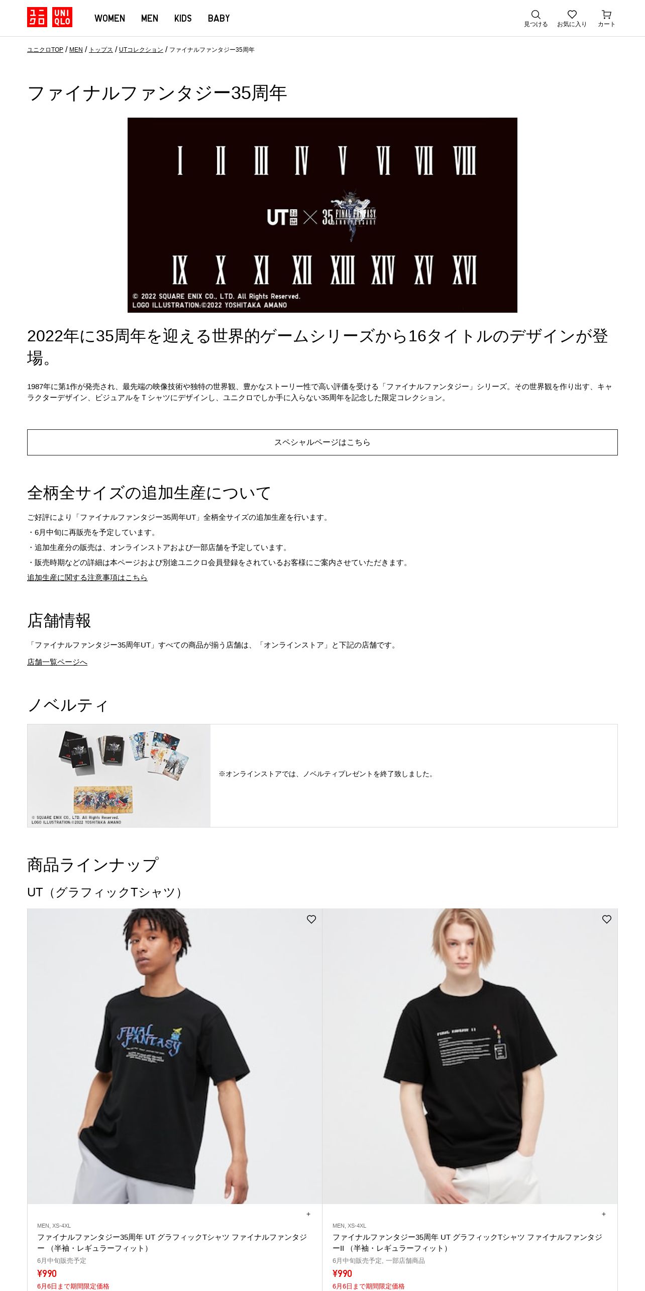 取得元URL: https://www.uniqlo.com:443/jp/ja/spl/ut-graphic-tees/final-fantasy-35th-anniversary/men