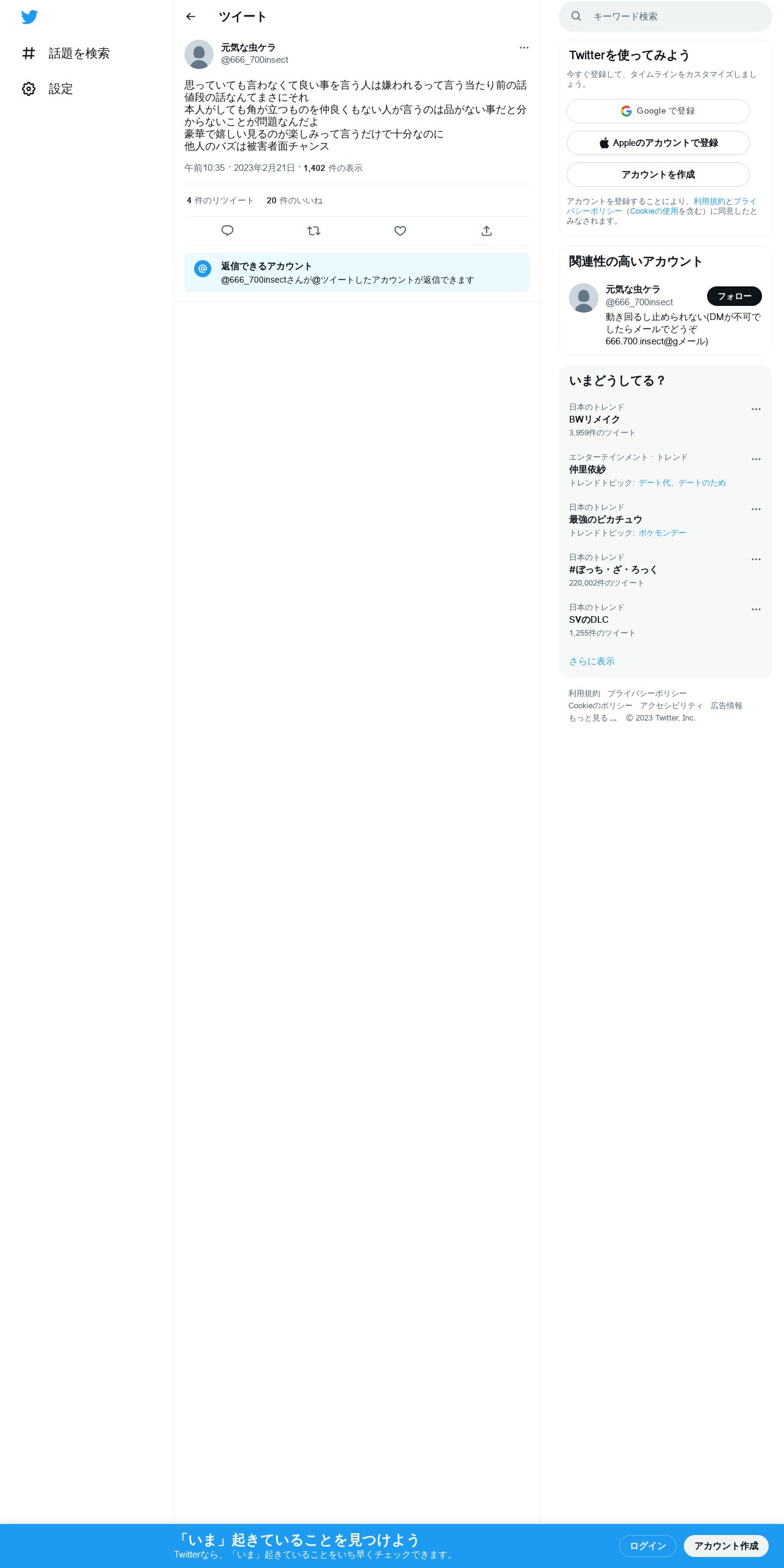 取得元URL: https://twitter.com:443/666_700insect/status/1627980430078263296