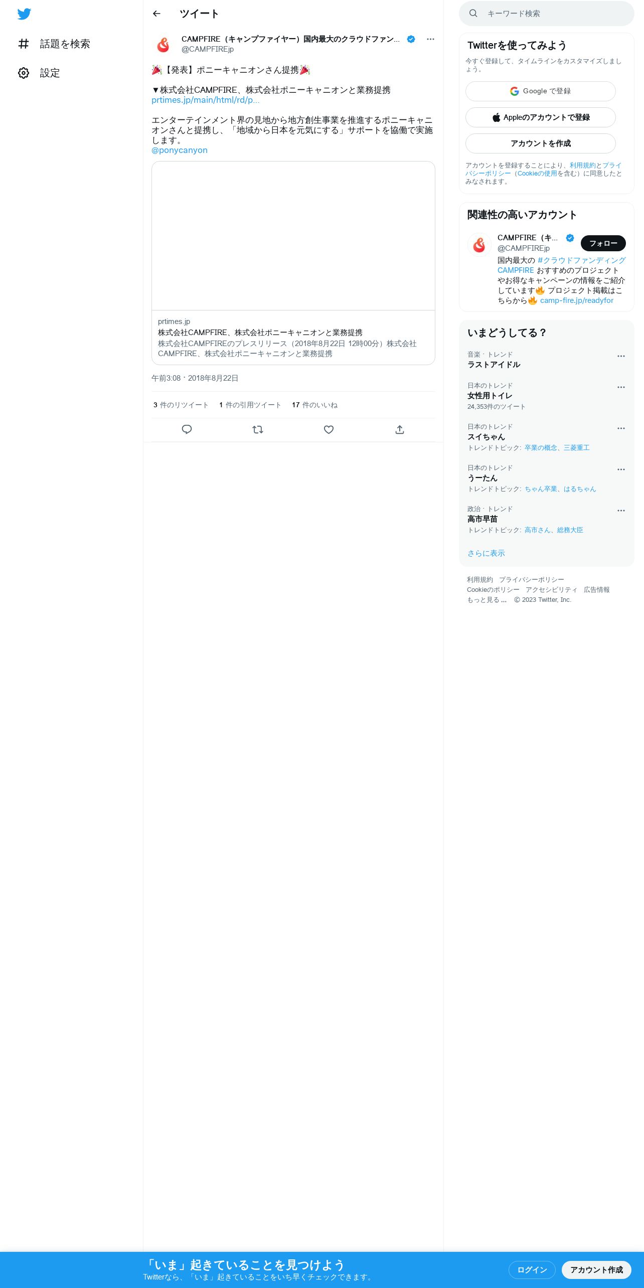 https://twitter.com:443/CAMPFIREjp/status/1032102271184596992
