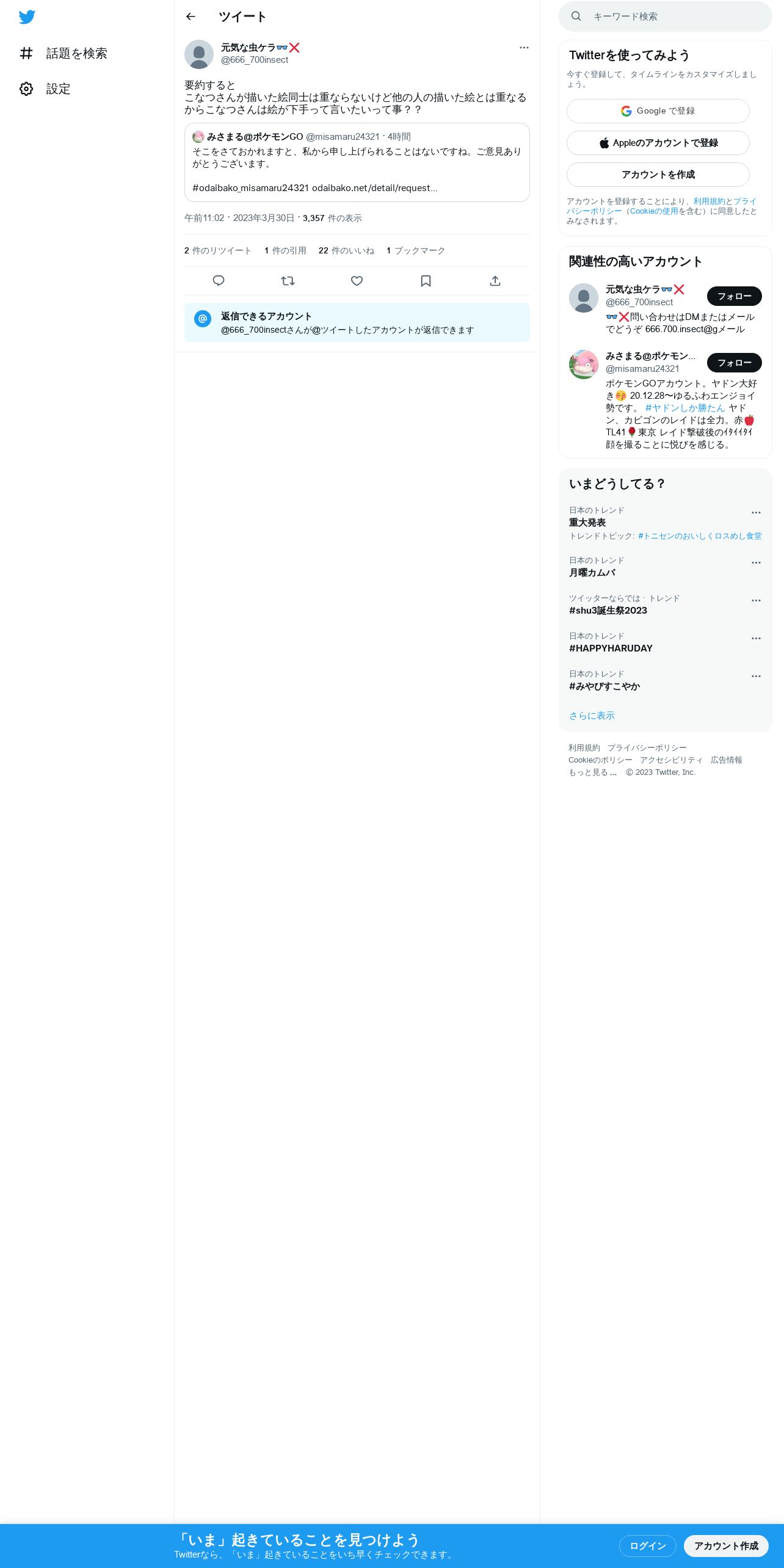 取得元URL: https://twitter.com:443/666_700insect/status/1641395465794252801