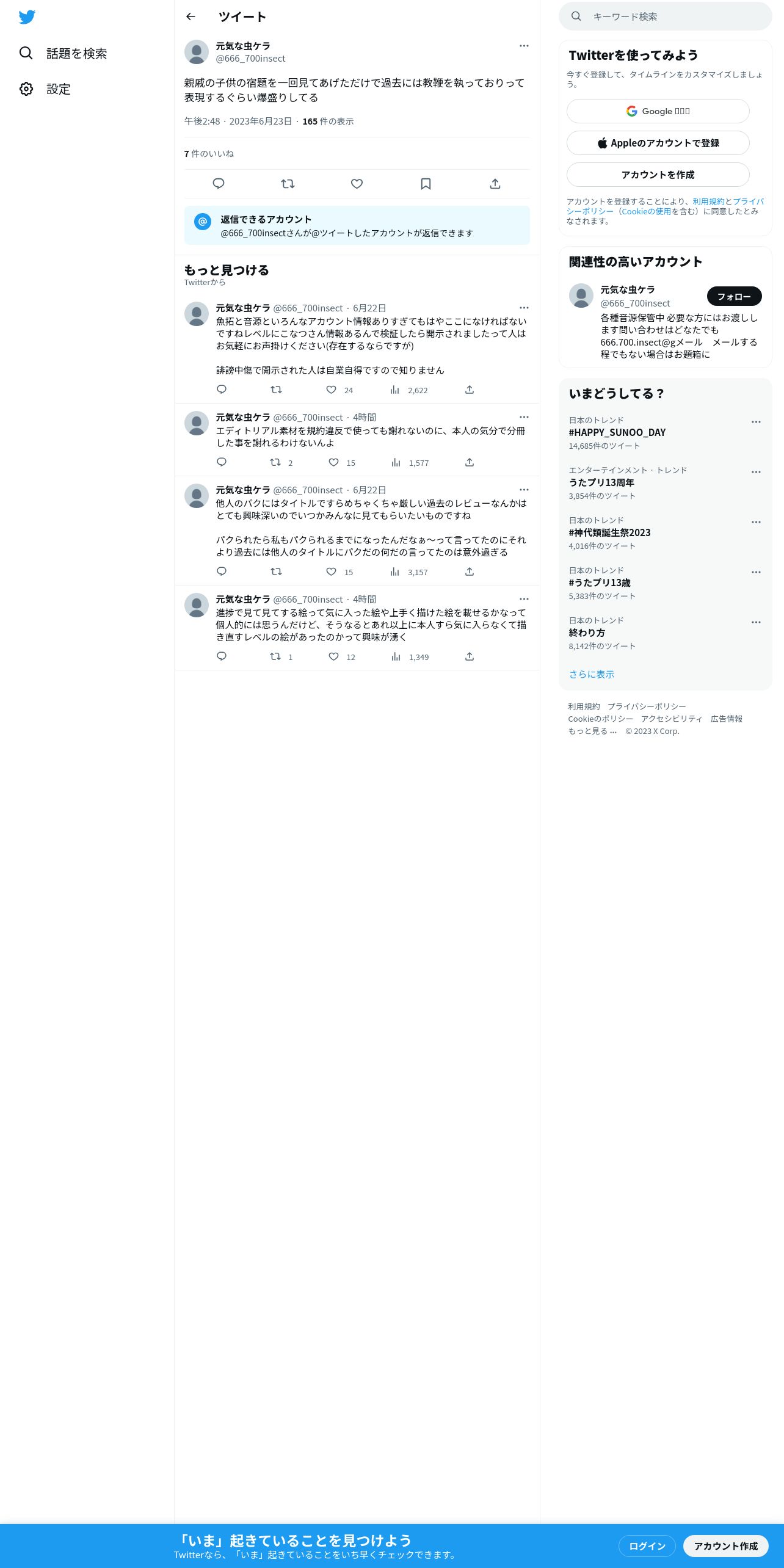 https://twitter.com:443/666_700insect/status/1672255344788258820