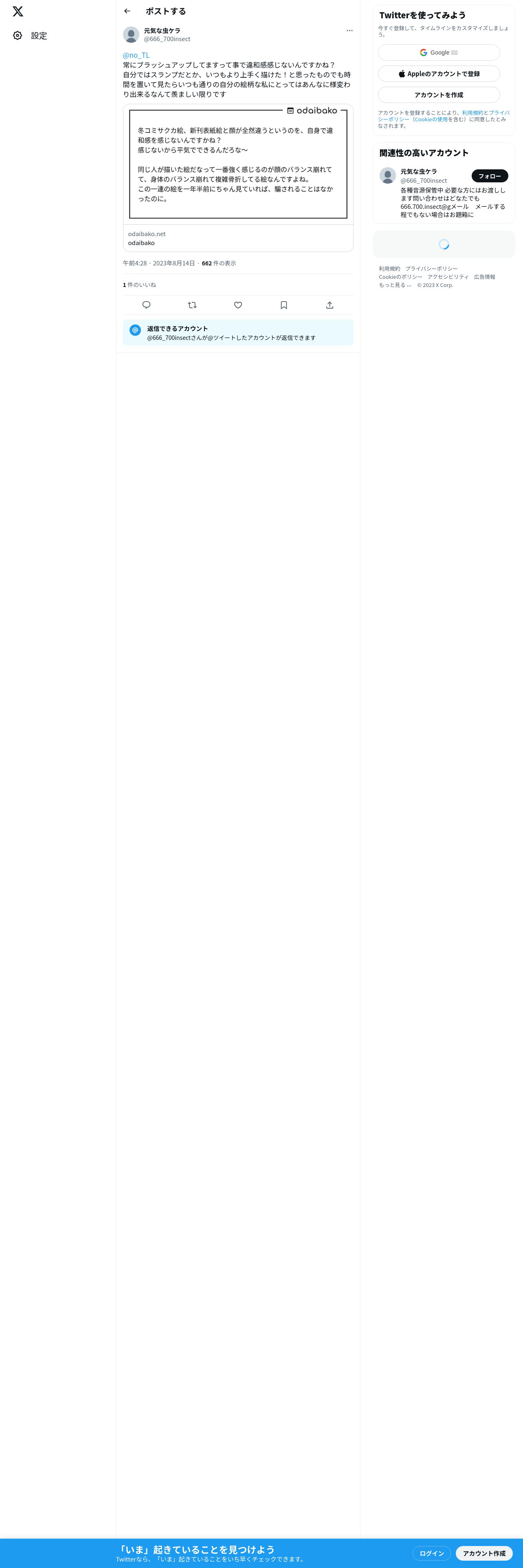 取得元URL: https://twitter.com:443/666_700insect/status/1690943349673668608