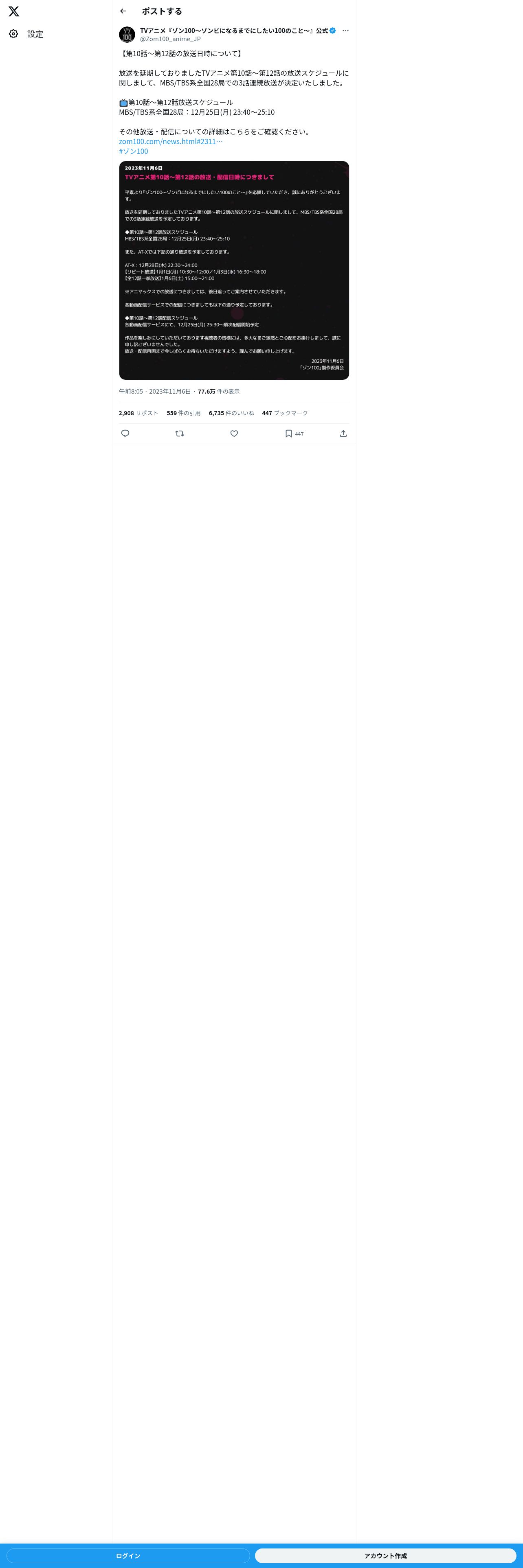 取得元URL: https://twitter.com:443/Zom100_anime_JP/status/1721438534337486949