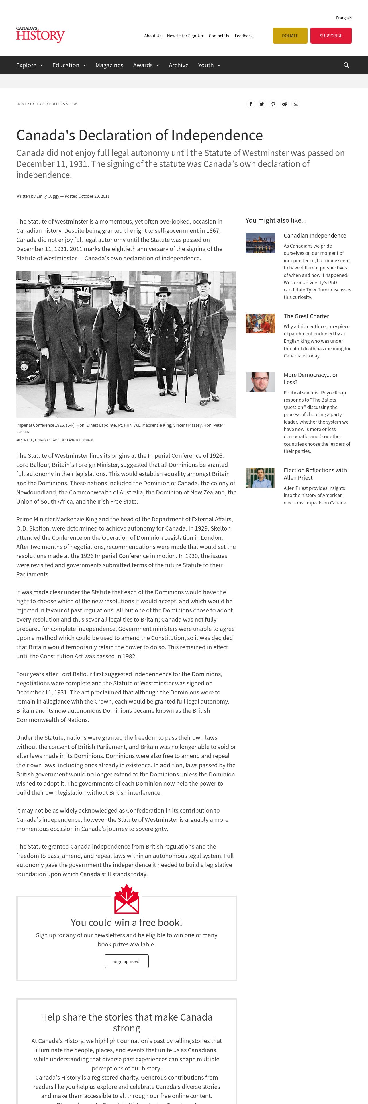 https://www.canadashistory.ca:443/explore/politics-law/canada-s-declaration-of-independence