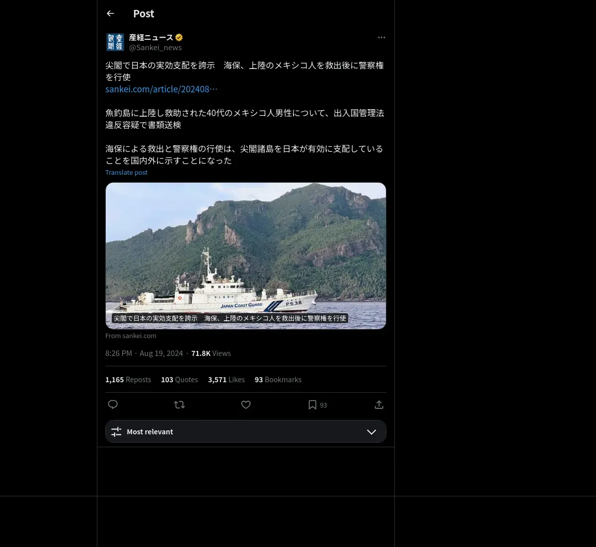 https://x.com:443/Sankei_news/status/1825494419157508349