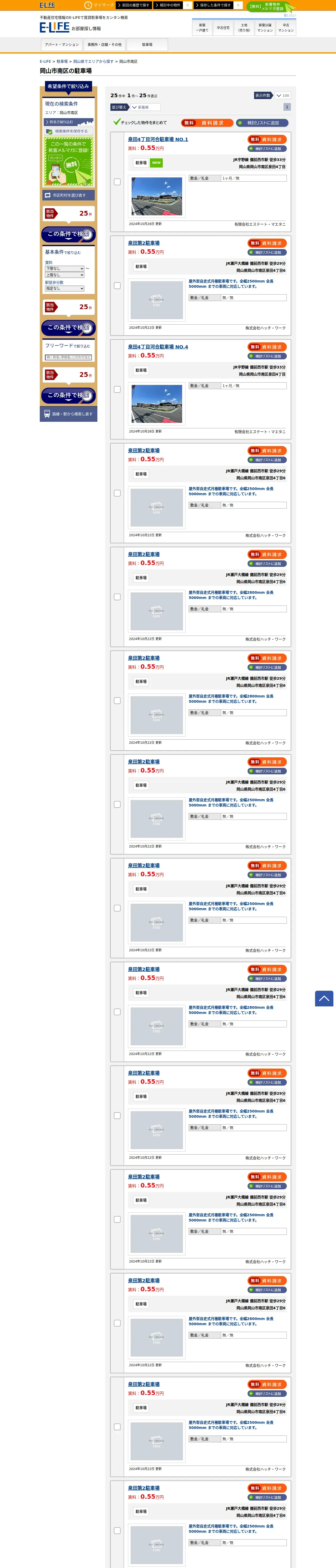 取得元URL: https://www.e-life.jp:443/chintai/parking/area/okayama/okayamashiminamiku/1/