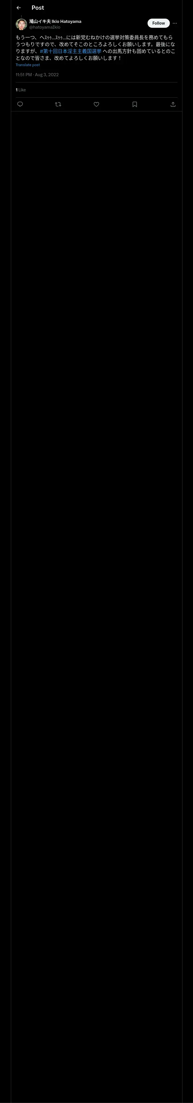 https://x.com:443/hatoyamaikio/status/1554842359086534656