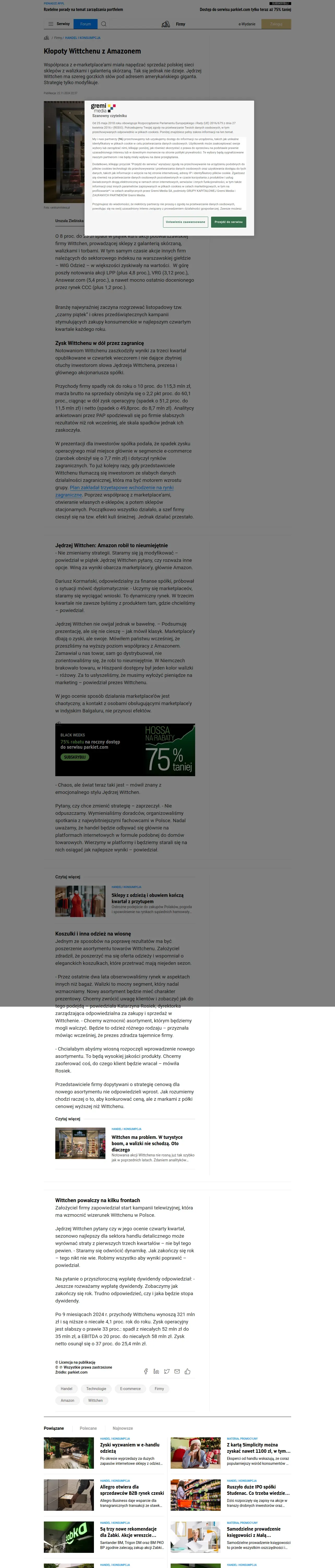 https://www.parkiet.com:443/handel-i-konsumpcja/art41487931-klopoty-wittchenu-z-amazonem