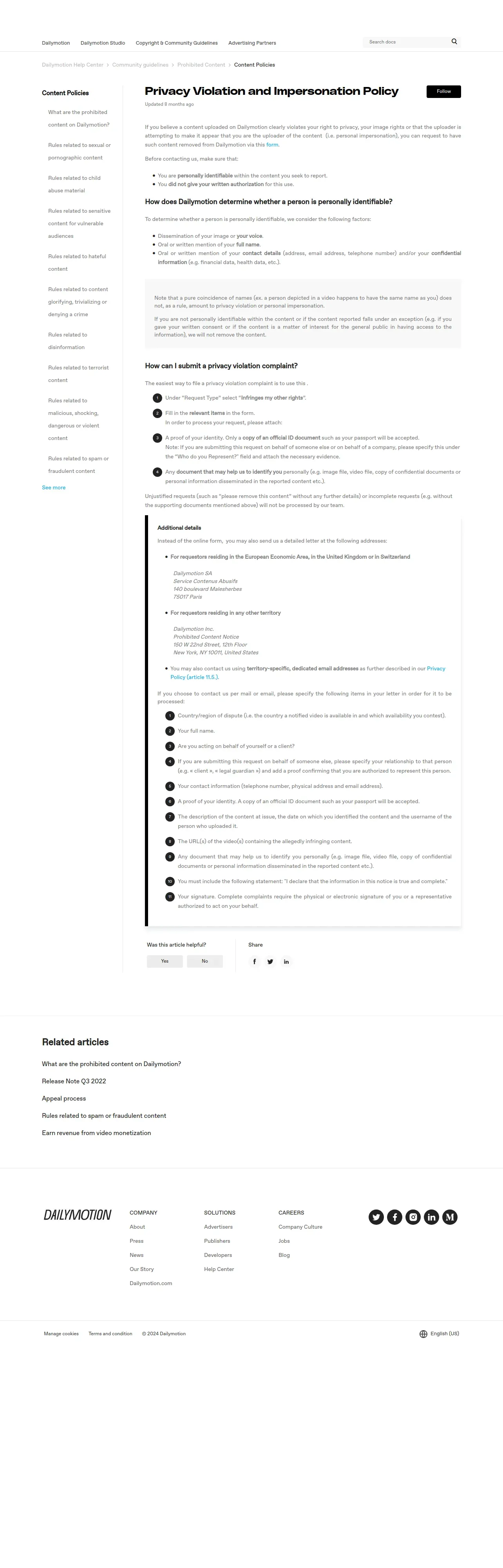 取得元URL: https://faq.dailymotion.com:443/hc/en-us/articles/360016549420-Privacy-Violation-and-Impersonation-Policy